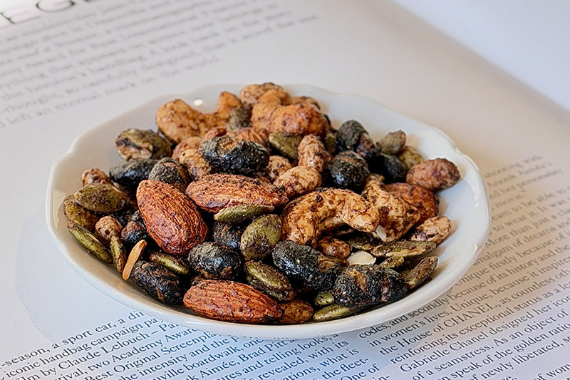 越南腰果富含大量蛋白質、澱粉、鋅、鎂、鉀、鐵、維生素A、B1 、 B2 、B16美國杏仁果鈣含量為堅果之冠,富含維生素E、鎂、鉀、鋅、不飽和脂肪酸加拿大黃豆享有豆中之王的美稱,豐富蛋白質、礦物質及卵磷脂青仁黑豆富含蛋白質、膳食纖維、維生素和礦物質南瓜籽含豐富維生素、礦物質及膳食纖維,有極高的營養價值